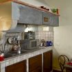 🛋️ Spacious living area featuring a pietra serena kitchen and a large fireplace, creating a warm and inviting atmosphere.